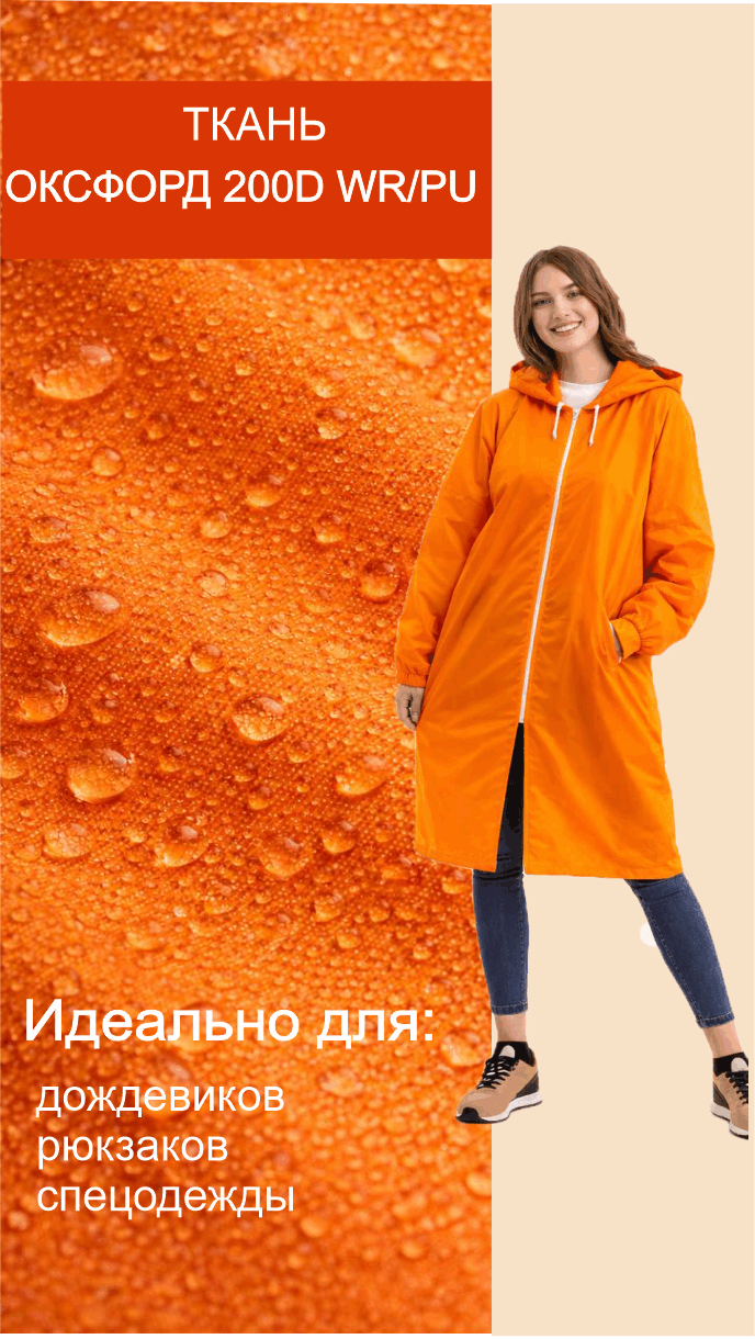 Ткань Оксфорд 200 D WR/PU 77+/-5гр.м2 рул 100м гладь